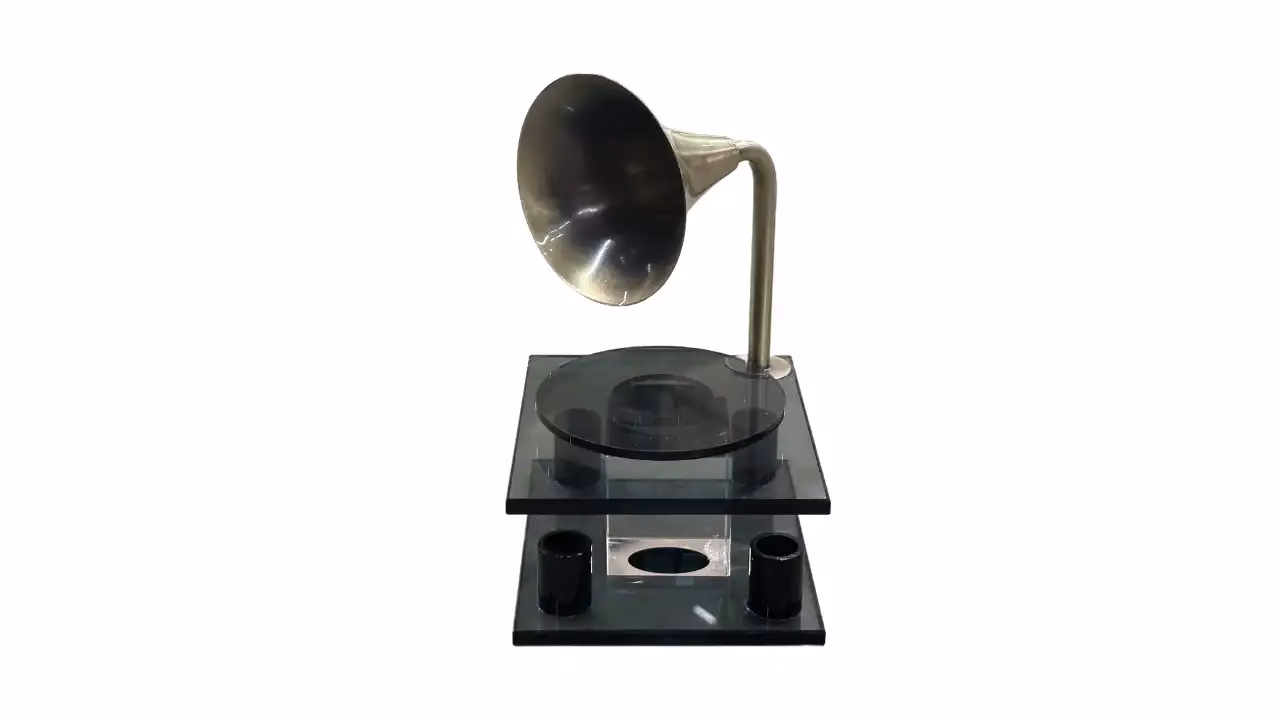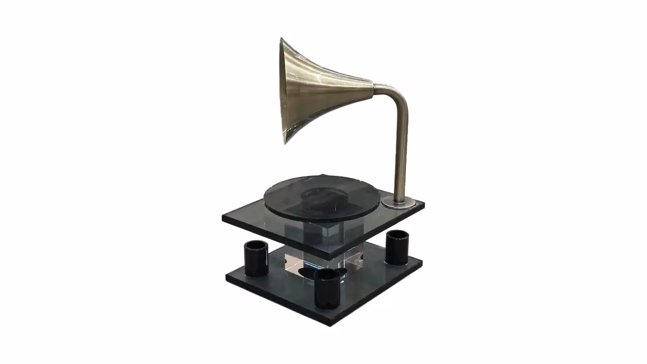 Vintage-Inspired Design: Evokes the classic look of a traditional phonograph with a modern crystal twist.