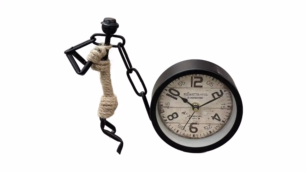 Unique Design: The stick-figure man and rope detail create a sense of movement and effort, symbolizing the passage of time and perseverance.