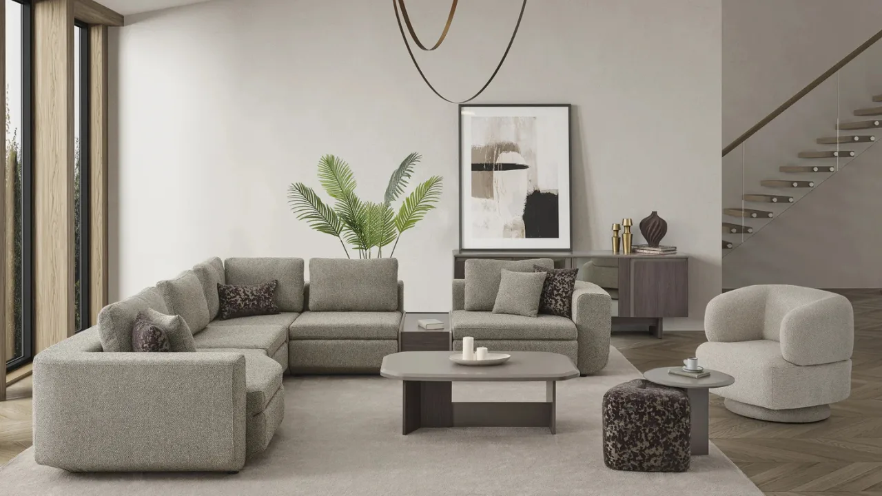 The corner configuration maximizes seating while making efficient use of space—perfect for modern homes where style and practicality go hand in hand.