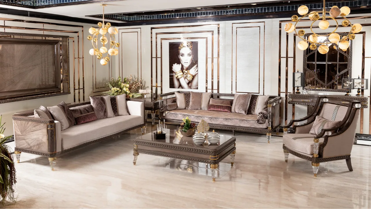 Elegant Design: The Soprano Int Sofa Set features a refined design with intricate detailing, making it a statement piece for sophisticated interiors.